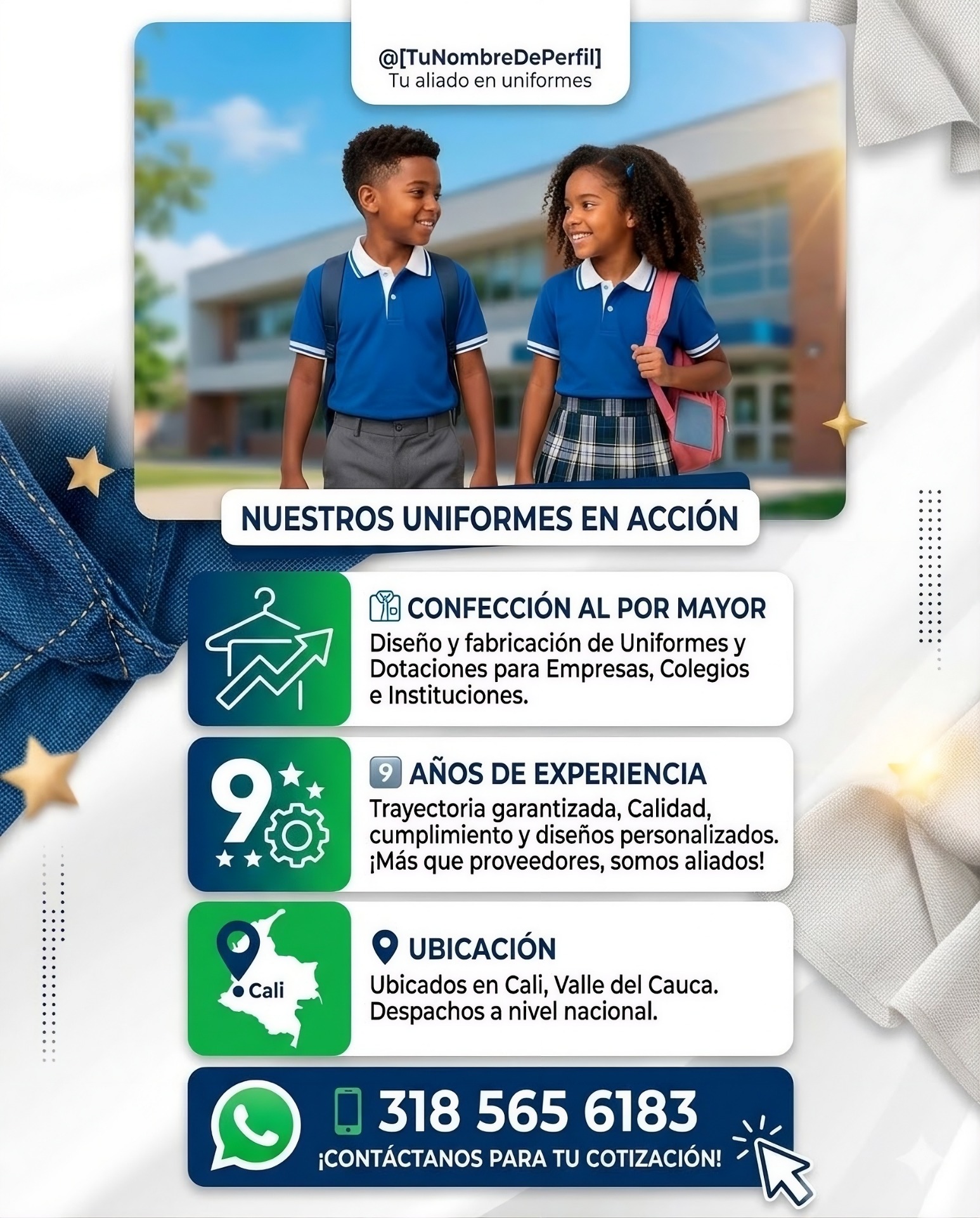 En Confecciones La 62, entendemos que el uniforme es la cara de tu organización. Ya sea que busques la identidad de tu empresa o la excelencia para tu institución educativa, estamos listos para fabricar prendas que combinan durabilidad, diseño y comodidad.
